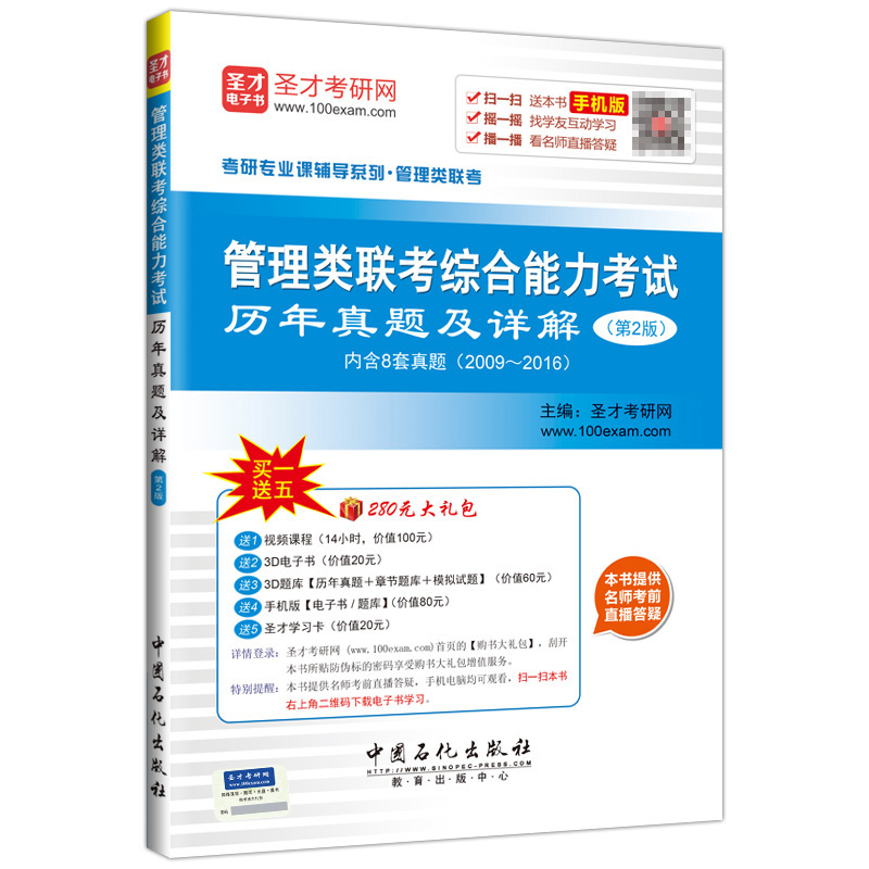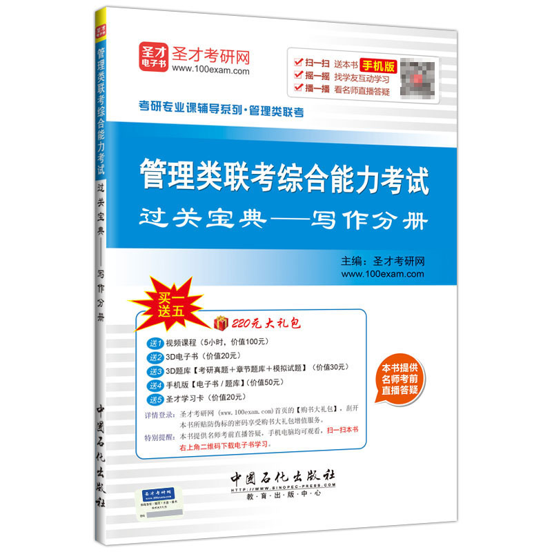 2017年管理类联考综合能力考试过关宝典——写作分册/逻辑分册及历年真题详解正在预售,购买本系列图书享受大礼包增值服务,登录圣才考研网(www.100exam.com),刮开所购图书封面防伪标的密码,即可享受大礼包增值服务:①视频课程;②本书3D电子书(价值20元);③3D题库【历年真题+章节题库+模拟试题】;④手机版【电子书/题库】;⑤圣才学习卡(价值20元),可在圣才学习网旗下所有网站进行消费。