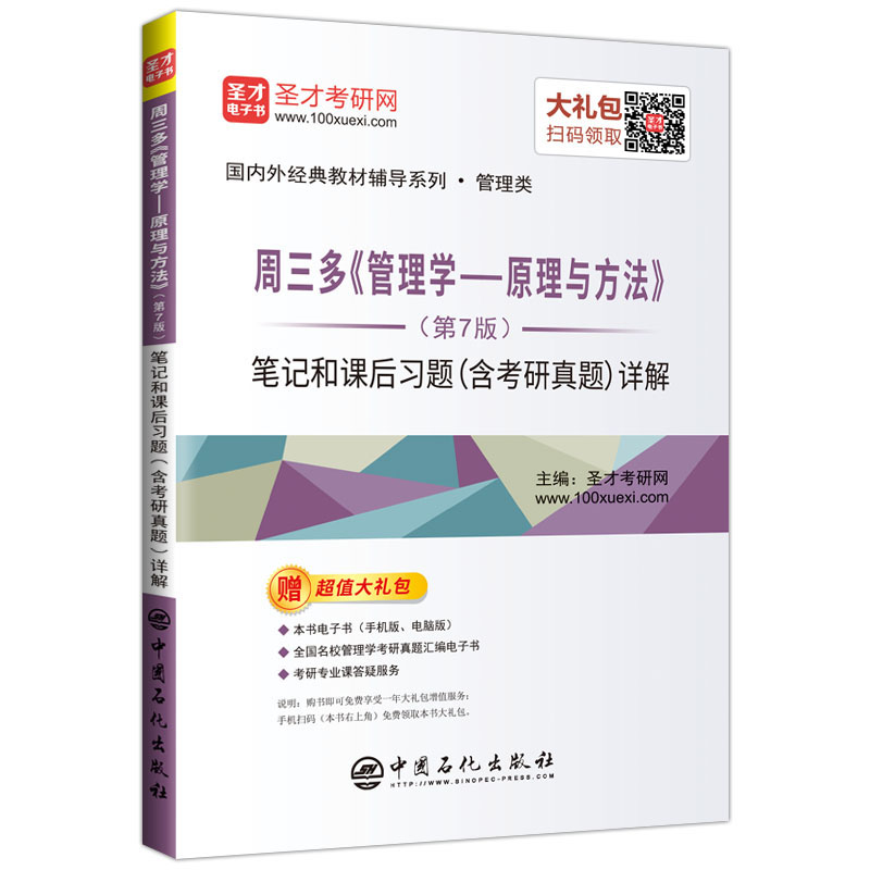 国内外经典教材辅导系列是一套全面解析当前国内外各大院校权威教科书的学习辅导资料。周三多主编的《管理学——原理与方法》是国内的标准管理学教材之一。本书遵循该教材第7版的章目编排,包括总论、决策、组织、领导、控制、创新等六个部分,共分为21章(含结束语),每章由三部分组成:第一部分为复习笔记(含知识框架),总结本章的重难点内容;第二部分为课(章)后习题详解,对该教材的所有习题进行了详细的分析和解答;第三部分为考研真题与典型题详解,精选部分名校近年的考研真题,补充典型题,并提供了详细的参考答案。